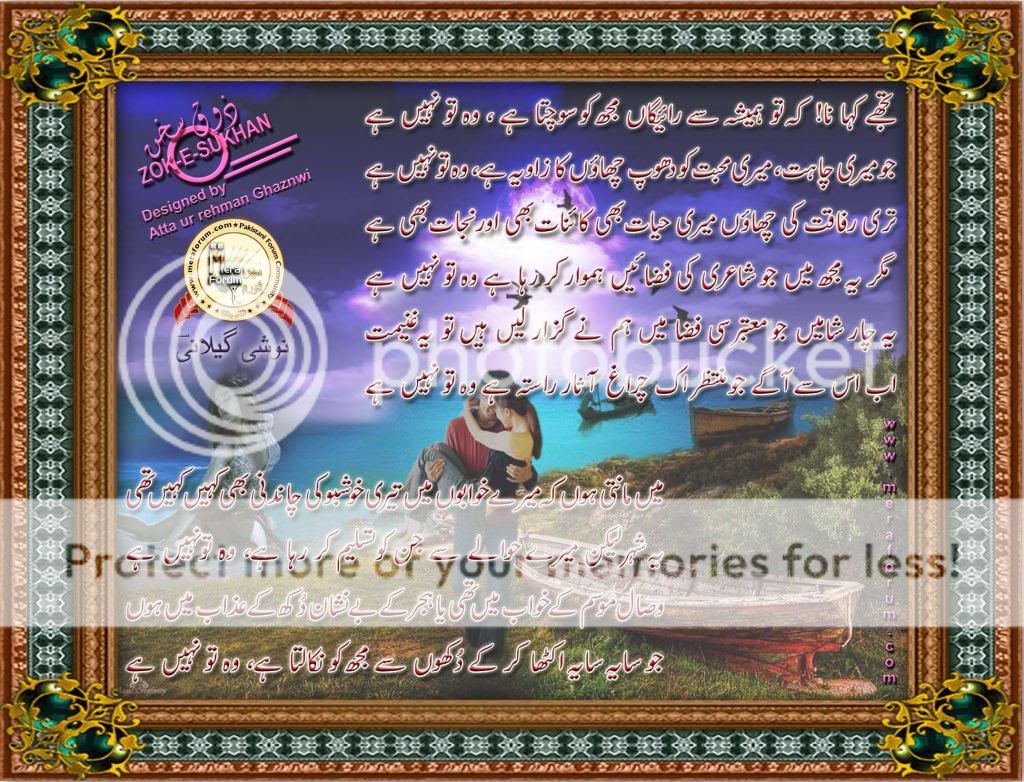 | Tuje Kaha na k too hamesha se raigan muje sochta hai.. | Atta ur Rehman | Image Poetry | 3 | 09-30-2012 07:32 PM |